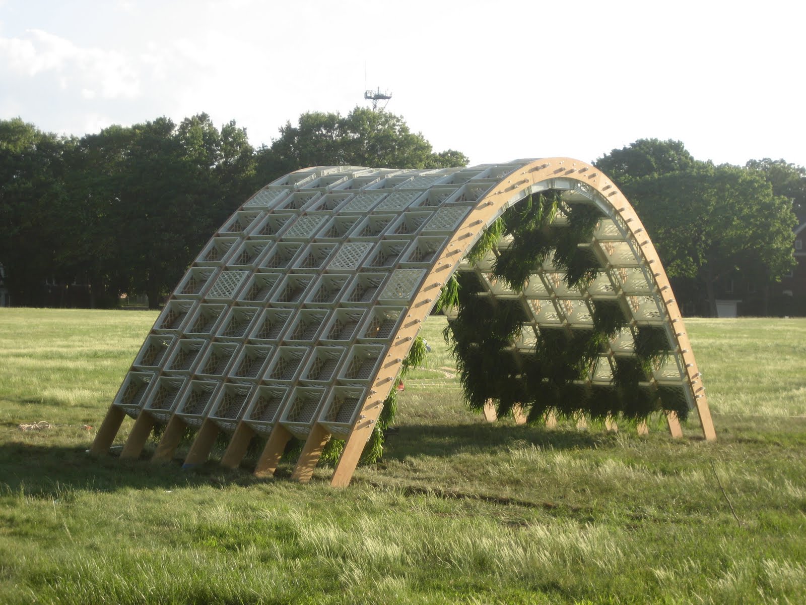 I am proud, joyful, and relieved to report that the Figment Living Pavilion stands complete a day ahead of schedule. On a drizzly Wednesday morning, after weeks of reported thunderstorms but gorgeous weather, screws were tightened and foundation ditches filled to secure our dream of building architecture in NYC's best park.